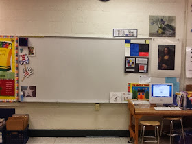 My white board was installed today....It was the best day ever! Seriously, I ordered it a year ago and it has been sitting in a box in my classroom ever since. I had given up hope of ever seeing it on the wall and never thought I'd be able to use it. Doesn't it look great? I didn't write on it today because I wanted to appreciate the splendor of having it hung!