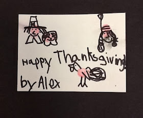 A review of cutting on the dotted or broken line of the turkey shape came next as scissors were passed out and the cutting began. This was not an easy cutting project as there were angles and curves to manipulate around. Happily, only a few turkeys lost their heads and were easily taped back together. It looks like those cutting skills are developing well!!