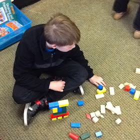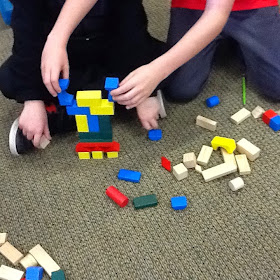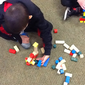 What type of behavior management program do you incorporate in your classroom? Both of my schools incorporate a Positive Behavior System and I tie my management to that program. In both schools, PBS is based on three focus points. In my classroom, students are expected to observed the points and as a group can earn three squares on a behavior chart each week. If all three squares are filled; they earn a free art class in 7 weeks. My first classes achieved free art this week. I have several art games, drawing books and old favorite creative toys such as blocks, spiral graph, a felt board, Wild Wooly, and etch-a-sketch for students to use freely during this class period. I love watching the choices they make when given the opportunity to freely explore. Here are a few photos from yesterday's creativity. Regardless of age, the boys are always drawn to the blocks. Future architects in the making, I predict!