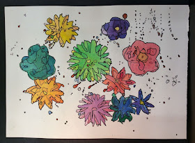 Students painted a visually balance work with a focus on analogous colors.  Their flowers were to be recognizable and realistic in nature.  Negative space was accentuated through the process of tracing the lines formed by the paint colors.  This was to create depth and improve the impact of the design.  Thanks go out to Mrs. Kain from Lenox School District for sharing this lesson with teachers at our State Conference this fall.